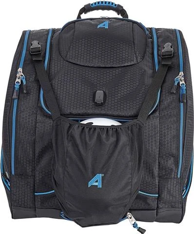 Pack a jacket, helmet, boots, and all your must-have gear in this ski boot bag for your next outdoor adventure. The Athalon Ultimate “Everything” XL Ski Boot Bag is loaded with features to suit your active lifestyle. The boot bag features zippered, ventilated side pockets for boots, a center section for a jacket, helmet, or clothing. Hide-way Helmet sling gives you additional room for the interior compartment. A Cable/Cord Port that allows access for USB Cables to connect to portable devices, smartphones and power banks (not included). An exterior Accessory/Goggle Pocket and 2 external Accessory / Beverage holder pockets. There are bottom drainage grommets, a waterproof heavy-duty rubber bottom, a bungee cord on the front to hold a jacket or clothing layers, and reflective piping for increased visibility. Other features of this ski boot bag include padded hidden backpack straps, sternum strap, deluxe triple-thick padding that creates amazing cushioning in the lumbar area, and versatile top and front carry handles.